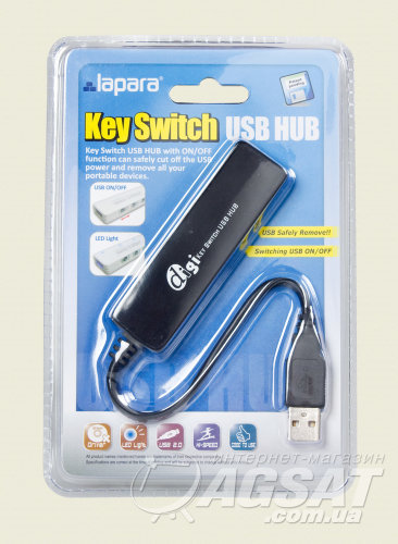 Простой, не нуждающийся в дополнительном питании USB-разветвитель USB-HUB Lapara LA-UH252 примечателен тем, что имеет выключатели каждого подключаемого порта USB.