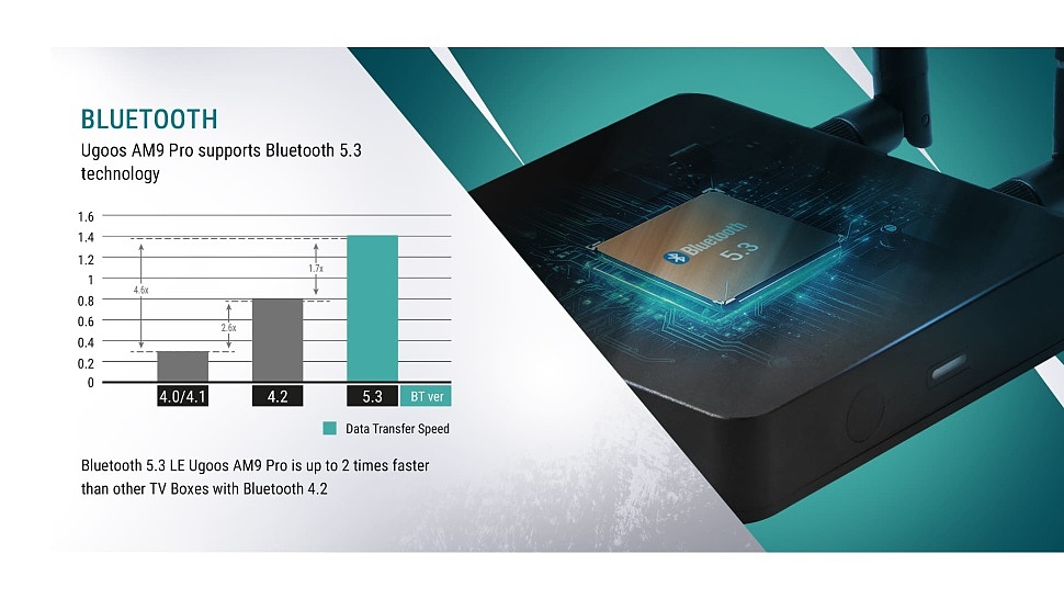 Купить UGOOS AM9 Pro — это решение закрыть вопрос домашних развлечений на ближайшие 3–4 года. Пока другие производители лишь догоняют стандарты, UGOOS уже предлагает поддержку кодека H.266 VVC, новейший Bluetooth 5.3 и гигабитную скорость сети. Эта приставка создана, чтобы быть центром вашей цифровой жизни: от просмотра «тяжёлых» 4K HDR фильмов через торренты до роли домашнего сервера или игровой консоли.