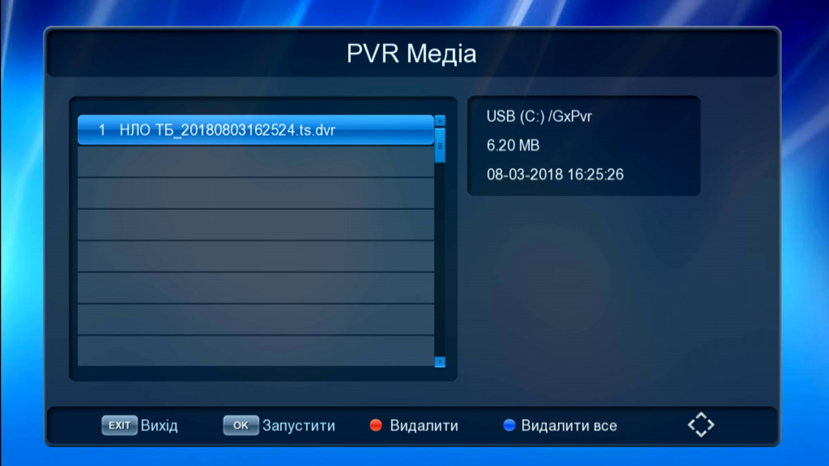 Записанный материал можно потом просмотреть на ресивере. При воспроизведении видео материалов приставка работает довольно шустро, перемотка, возобновление воспроизведения после паузы не вызывает нареканий. Стабильная и быстрая работа Т2 ресивера позволяет его использовать в качестве медиаплеера, хотя, стоит заметить, что ресивер вряд ли полноценно заменит Android СмартТВ приставку.