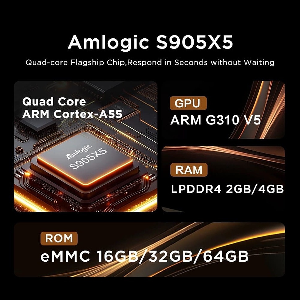 - Процессор: Amlogic S905X5 (4 ядра ARM Cortex-A55)