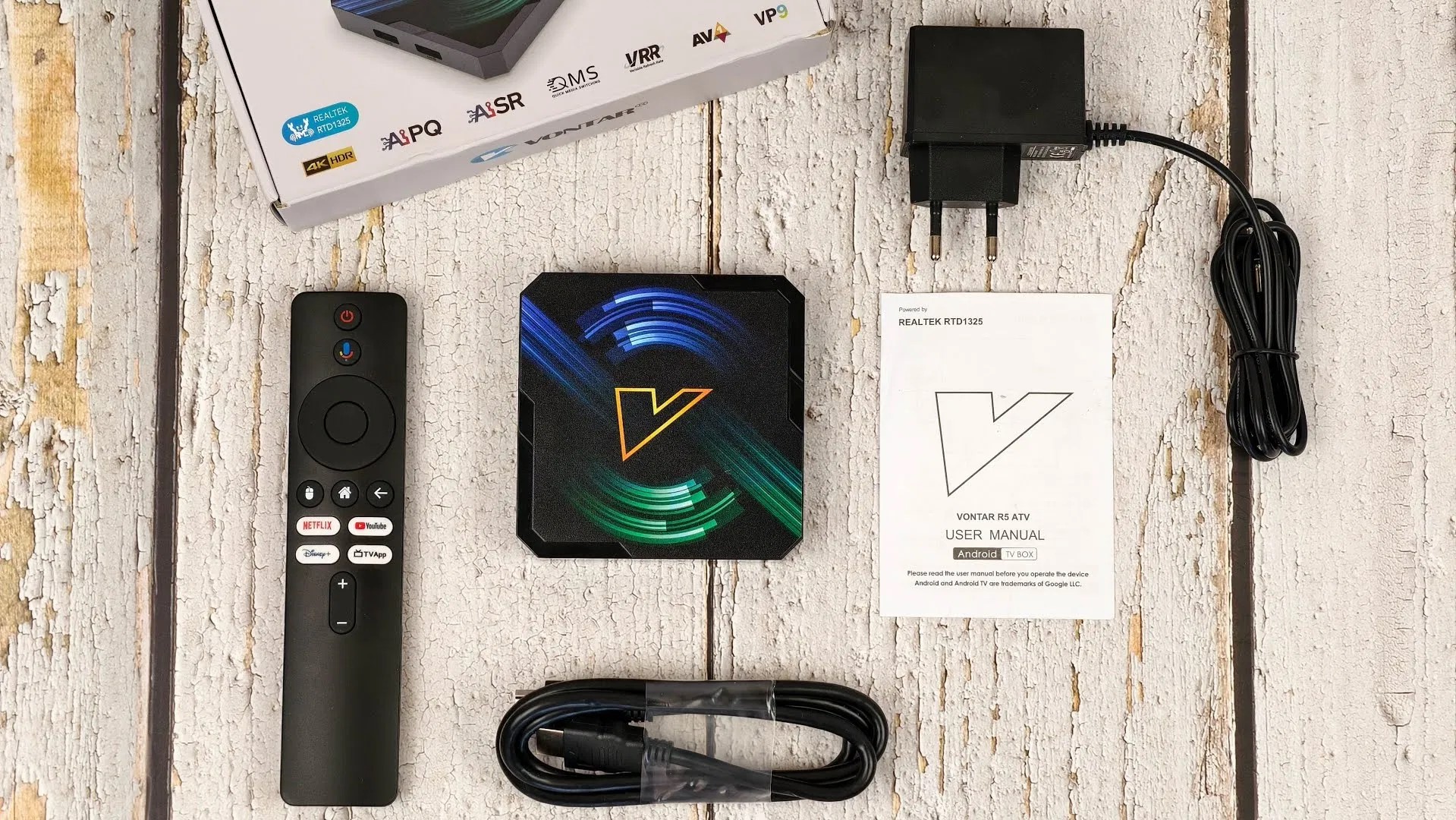 Vontar R5 4/32 — это бюджетный Android TV бокс для просмотра фильмов, IPTV и онлайн-контента в высоком качестве. Приставка работает на чипсете Realtek RTD1325, имеет 4 ГБ оперативной памяти, 32 ГБ встроенного хранилища и официальный Android TV 14 с сервисами Google.