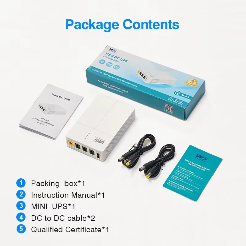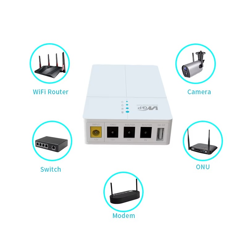 WGP Optima 302 — это надёжный mini-UPS для роутера и ONU, созданный специально для того, чтобы ваш интернет не пропадал во время отключения электроэнергии. Устройство имеет компактный корпус, встроенный Li-ion аккумулятор и несколько DC-выходов, позволяя одновременно питать роутер, ONU/модем, IP-камеру или другое маломощное устройство.